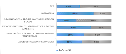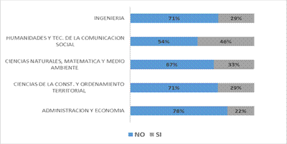 En el caso del estudiantado, las Facultades de Humanidades y Ciencias Naturales es donde se presentaron los mayores porcentajes de conocimiento del término. Al igual que en los docentes, los análisis estadísticos mostraron que los estudiantes de Humanidades conocen significativamente más el término que los estudiantes de las Facultades de Ingeniería (p< 0,001) y Ciencias de la Construcción (p< 0,05). En ese sentido, comprobamos estadísticamente que los docentes y estudiantes de la Facultad de Humanidades, son los que más conocen el término ND en comparación con el resto de las Facultades de la universidad. El detalle de los resultados comentados se presenta en las figuras 1 y 2.