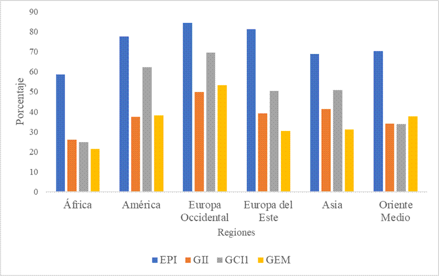 ambiental -EPI, la innovación -GII, la creatividad -GCI1 y el emprendimiento